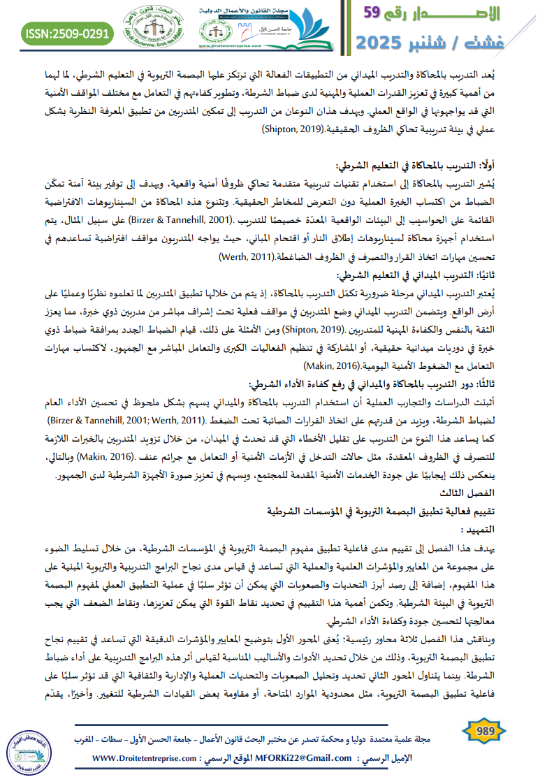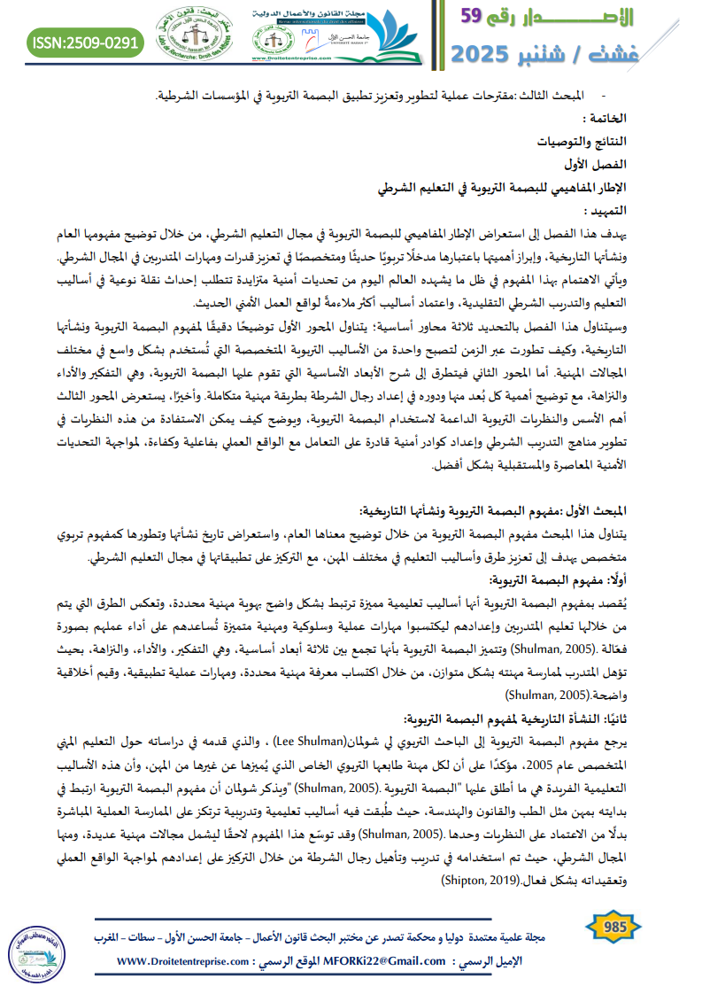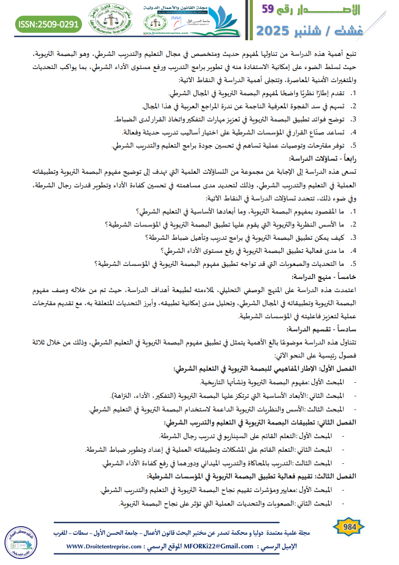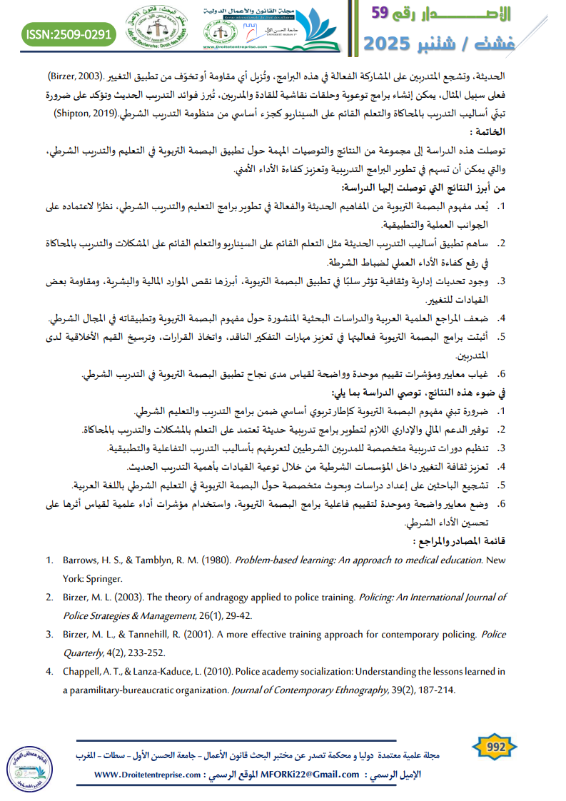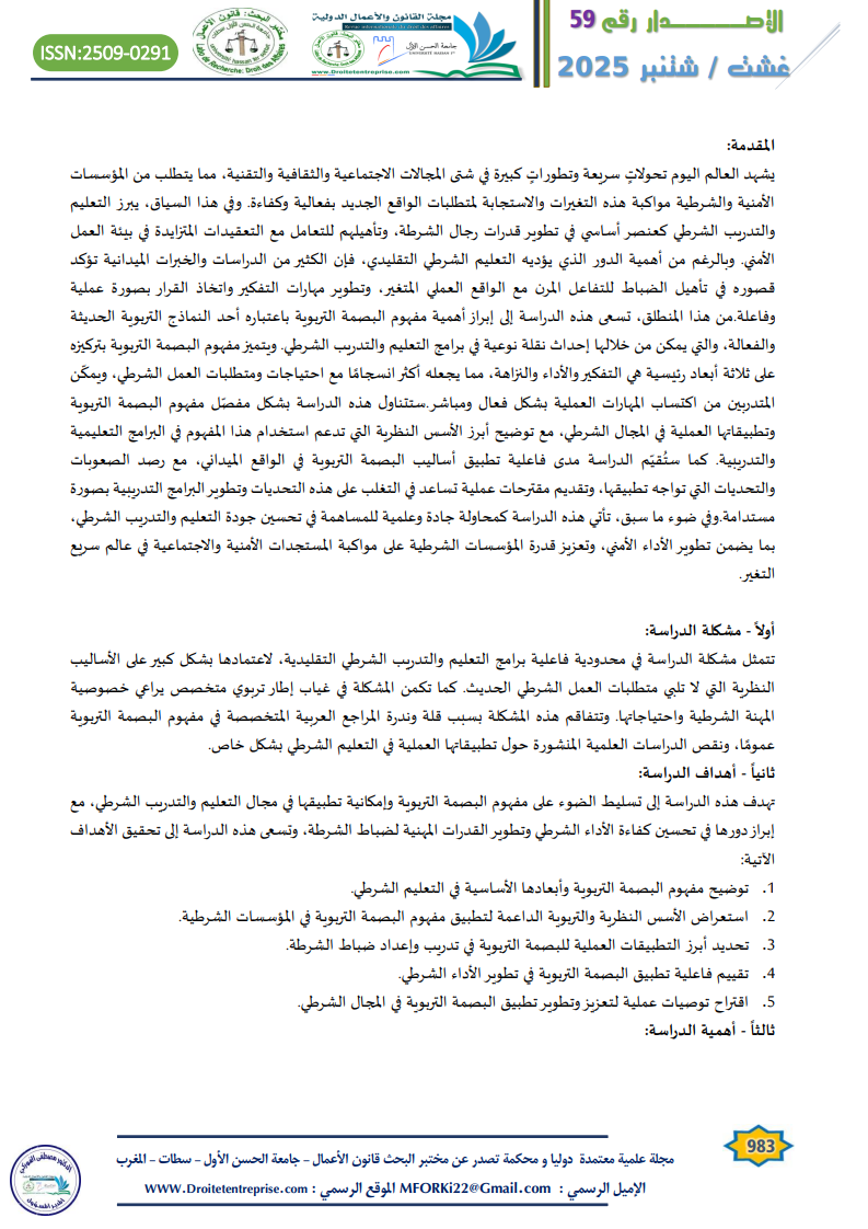 ضرورة تبني مفهوم البصمة التربوية كإطار تربوي أساسي ضمن برامج التدريب والتعليم الشرطي.