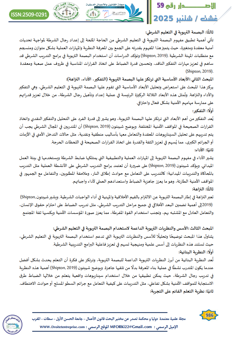 البصمة التربوية كمدخل لتطوير التعليم الشرطي: تعزيز التفكير والأداء والنزاهة لدى المتدربين العقيد / خالد راشد الزيودي