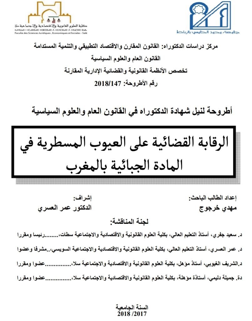 الرقابة القضائية على العيوب المسطرية في المادة الجبائية بالمغرب.