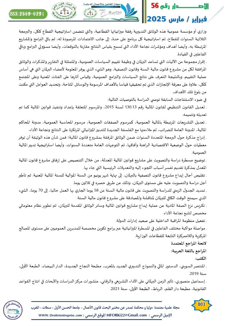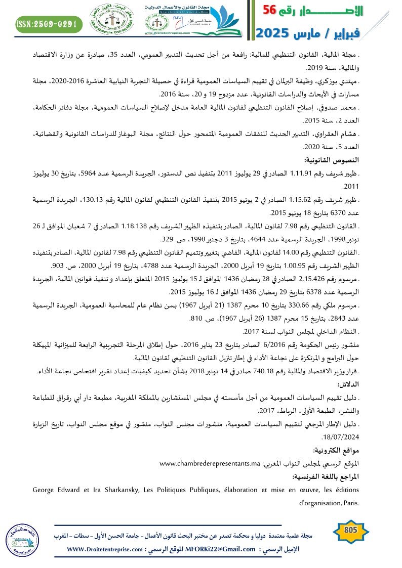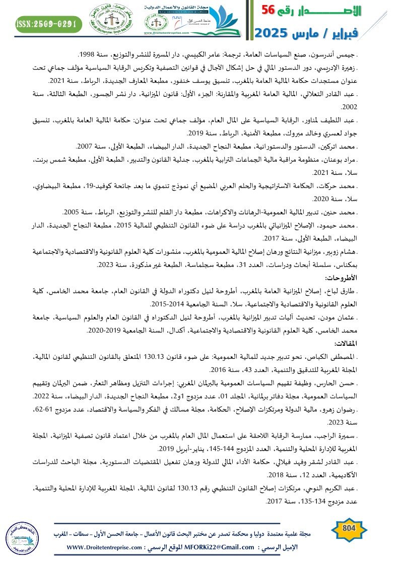 ـ رضوان زهرو، مالية الدولة ومرتكزات الإصلاح، الحكامة، مجلة مسالك في الفكر والسياسة والاقتصاد، عدد مزدوج 61-62، سنة 2023.