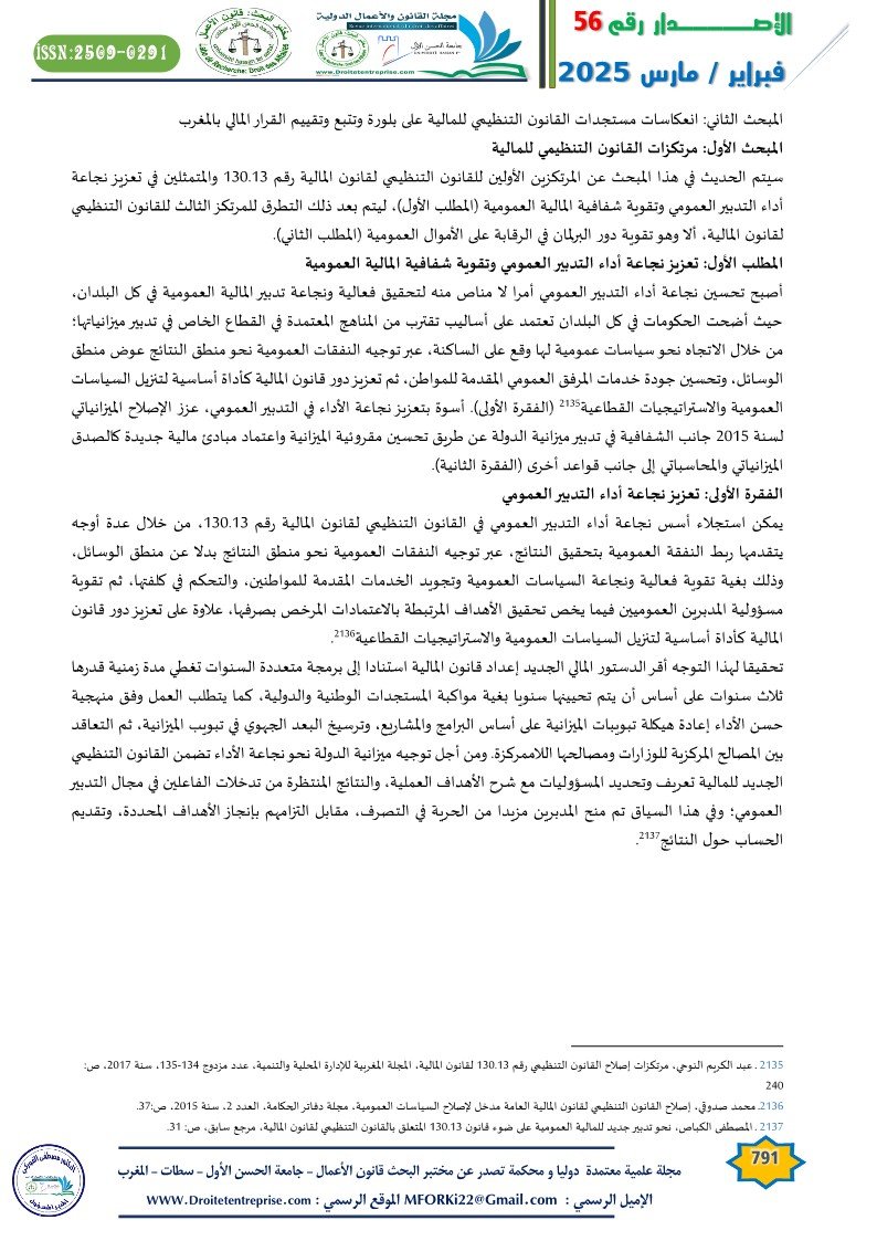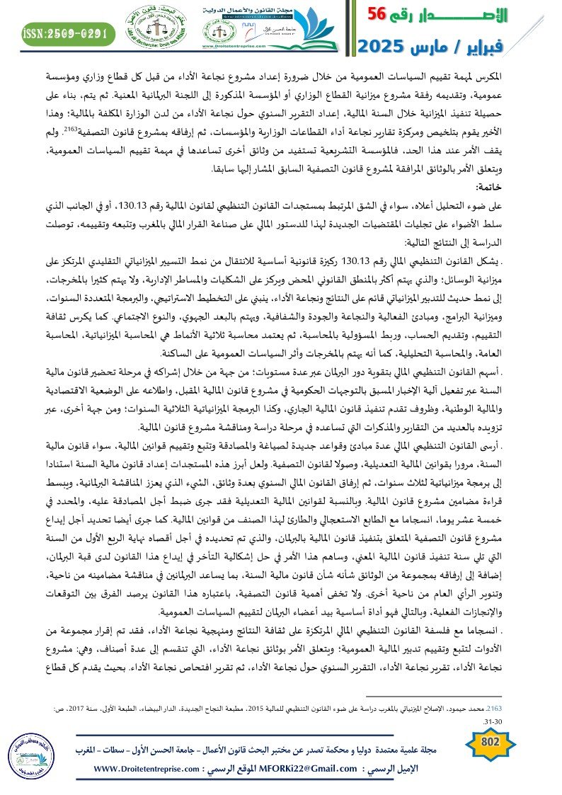 ـ عبد الكريم النوحي، مرتكزات إصلاح القانون التنظيمي رقم 130.13 لقانون المالية، المجلة المغربية للإدارة المحلية والتنمية، عدد مزدوج 134-135، سنة 2017.
