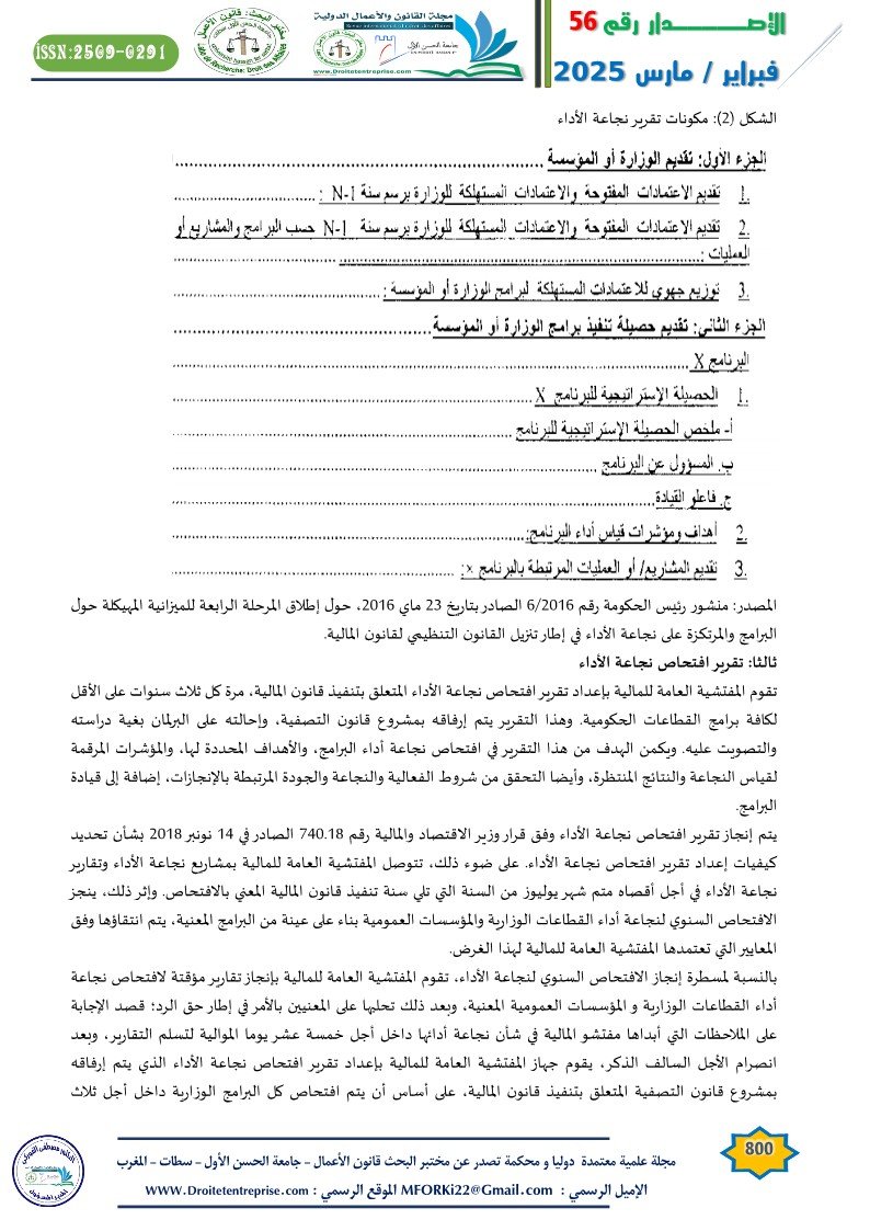 الكلمات المفاتيح: القانون التنظيمي للمالية، التدبير العمومي، نجاعة الأداء.