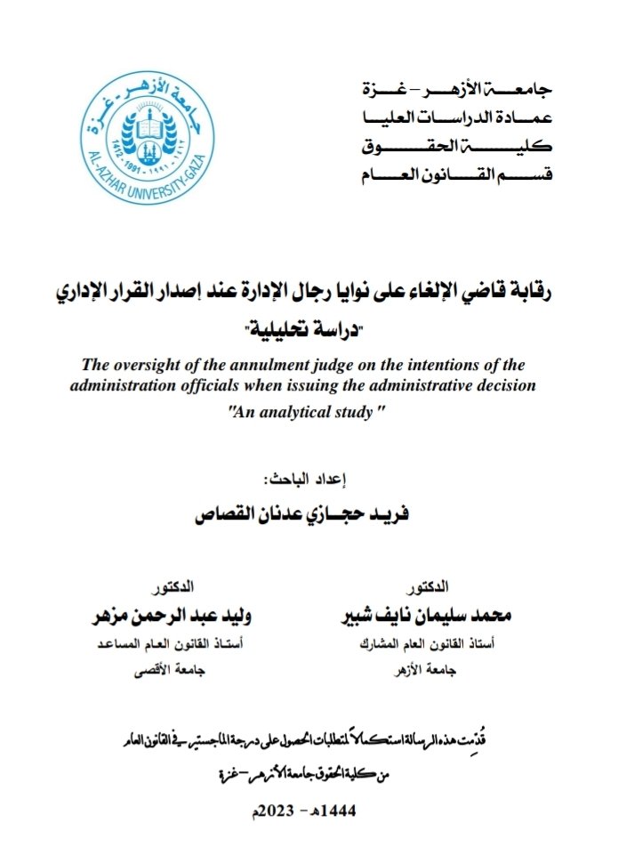 رقابة قاضي الإلغاء على نوايا رجال الإدارة عند إصدار القرار الإداري دراسة تحليلية