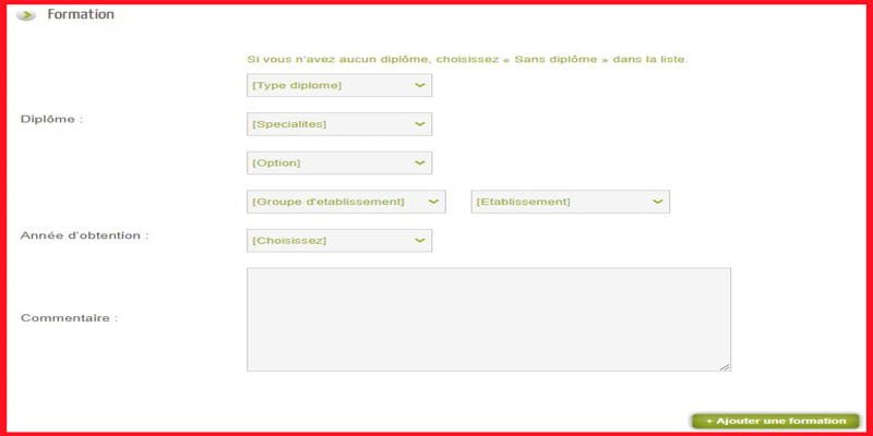 في الخانة بأسفل تاريخ الحصول على الدبلوم ajouter une formation يمكنك اضافة دبلومات أخرى وملأ مثل المعلومات السابقة.
