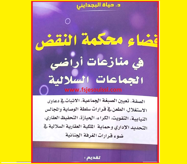نضع بين أيديكم كتاب قضاء محكمة النقض في منازعات أراضي الجماعات السلالية للدكتورة حياة البجدايني التي تناولت بالدراسة والتحليل بعضا من النقط القانونية المهمة ذات العلاقة بمادة الجماعات وأراضي الجموع.