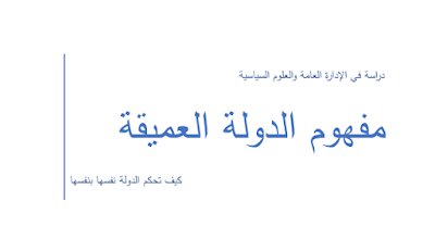 يقدّم الدكتور حازم زهو رعد، بمعية فريق من الباحثين (عبد السالم دويك، محمد سالمة، نورا هلال)، هذه الدراسة تحت عنوان مفهوم الدولة العميقة: كيف تحكم الدولة نفسها بنفسها، في إطار مَحاولَة لقراءة هذا الكيان المعقَّد من زاوية الإدارة العامة والعلم السياسي. Scribd+1