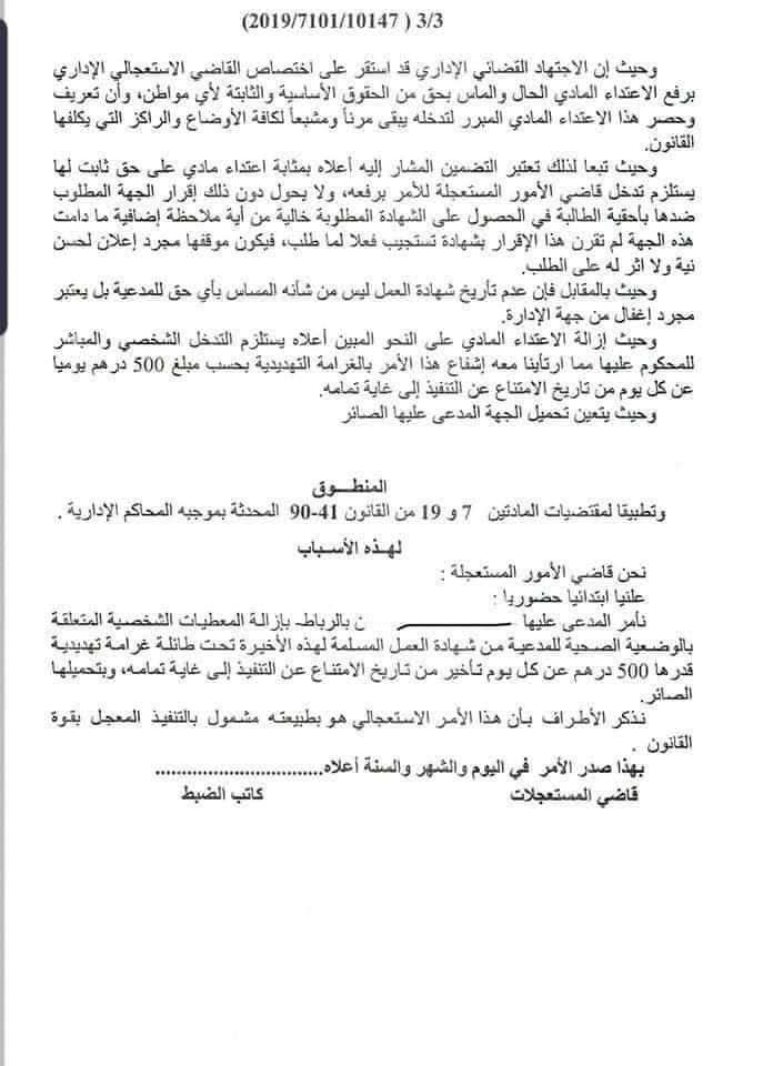 إدارية الرباط : تضمين شهادة العمل الوضعية الصحية للأجير يعتبر مساس بمعطياته الشخصية