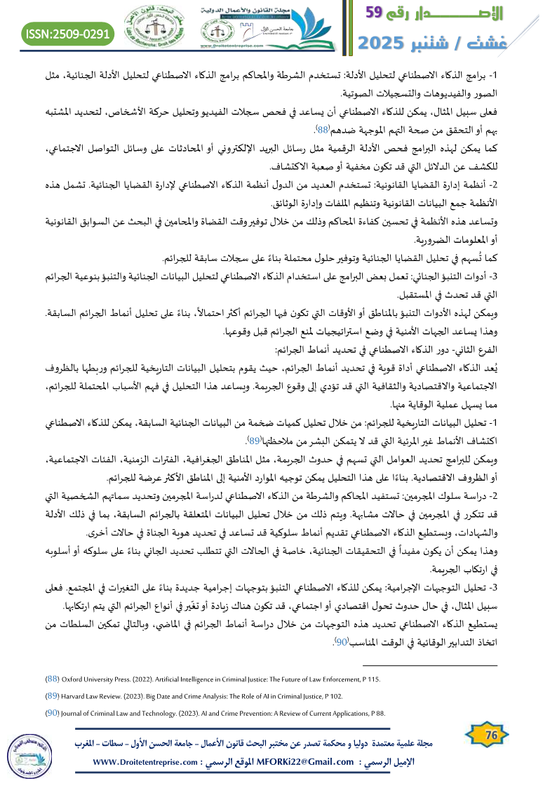 14- Harvard Law Review. (2023). Big Date and Crime Analysis: The Role of AI in Criminal Justice.