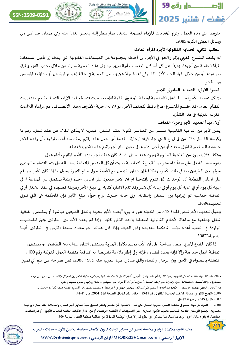 يشكل تحديد الأجر أحد المداخل الأساسية لحماية الحقوق المالية للأجيرة، حيث تتقاطع فيه الإرادة التعاقدية مع مقتضيات النظام العام. وقد وضع المشرع إطارًا دقيقًا لتحديد الأجر، يوازن بين حرية الأطراف ومبدأ الإنصاف، مع مراعاة التزامات المغرب الدولية في هذا الشأن.