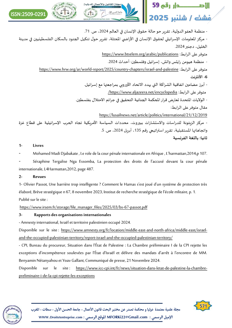 – منظمة الأمم المتحدة، مكتب مفوضية الأمم المتحدة بفلسطين، دولة فلسطين: وضع حقوق الإنسان في الأراضي الفلسطينية المحتلة بنا في ذلك القدس الشرقية، والالتزام بضمان المساءلة والعدالة، فبراير 2025.