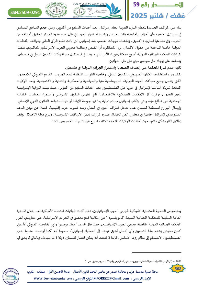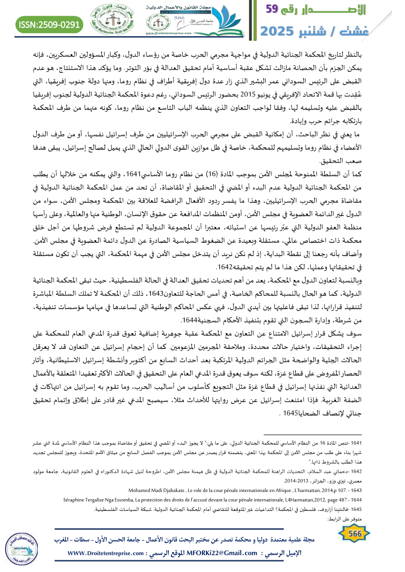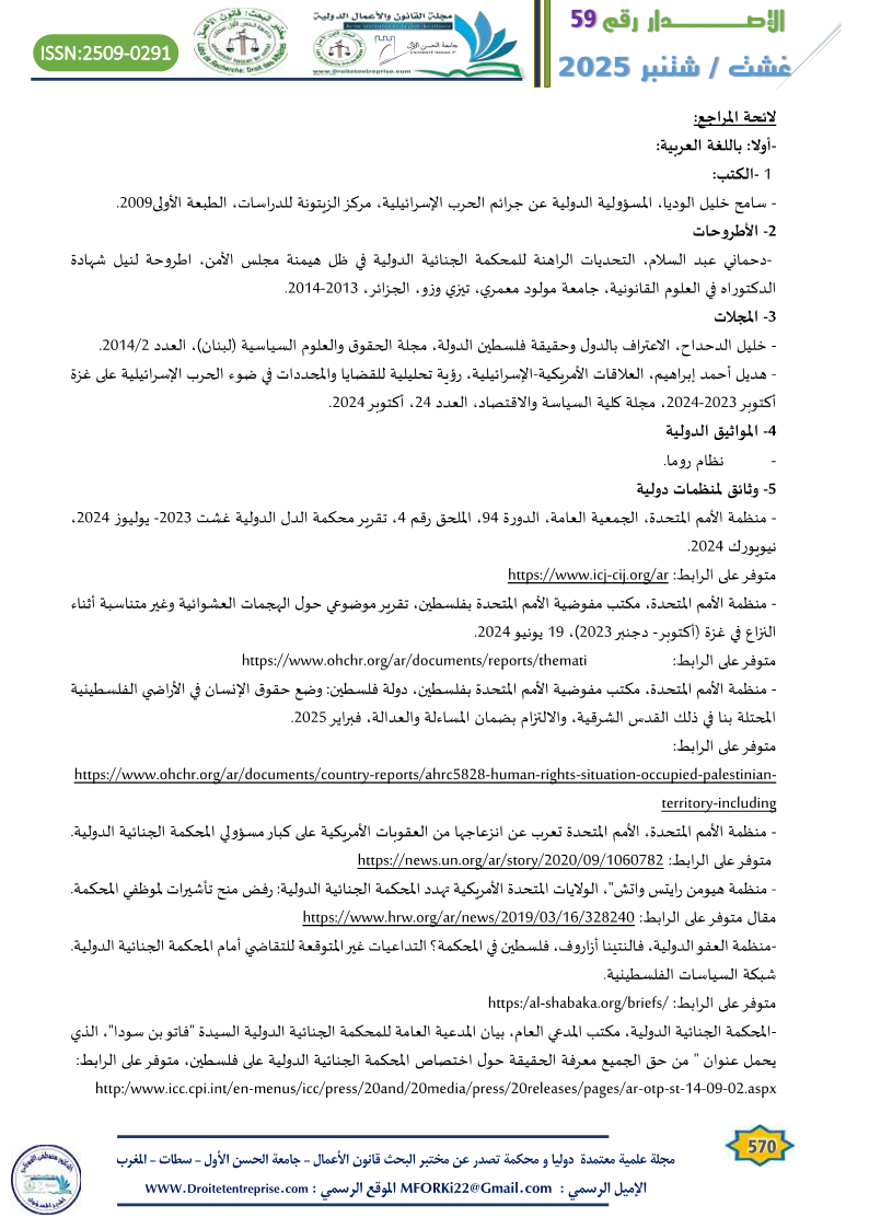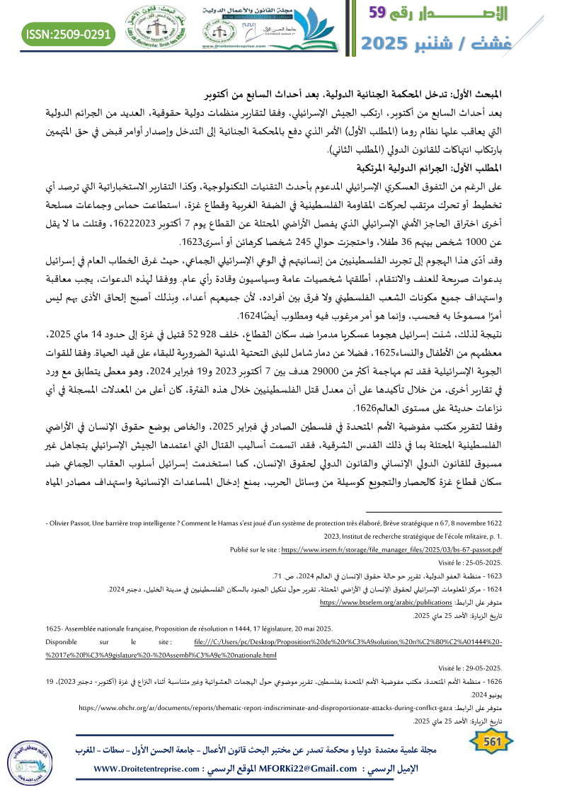 العدالة الجنائية الدولية في فلسطين بعد أحداث السابع من أكتوبر الدكتور : العربي حماني،