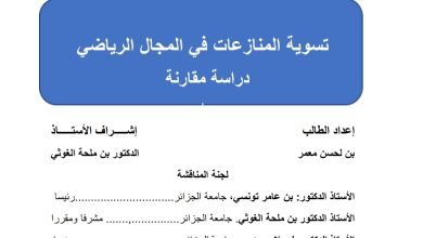تحميل أطروحة دكتوراه: تسوية المنازعات في المجال الرياضي PDF تتناول هذه الأطروحة موضوع تسوية المنازعات في المجال الرياضيمن منظور قانوني…