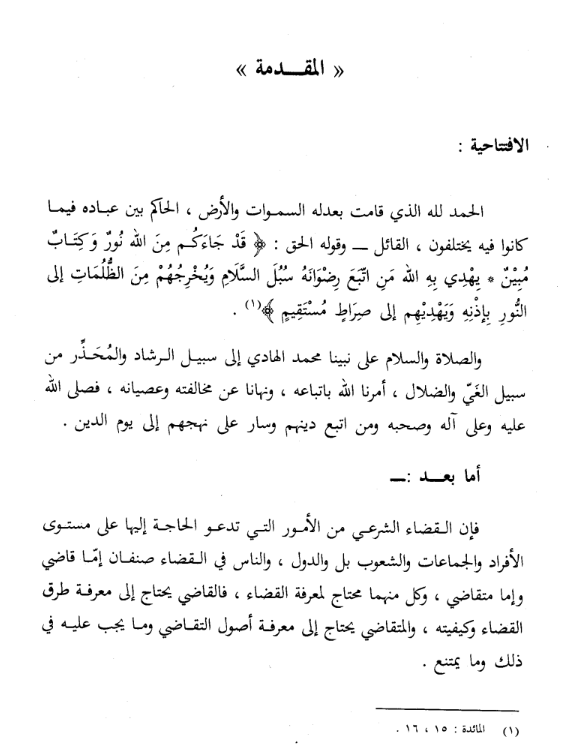 - الإشارة إلى ضرورة تطوير آليات تطبيق القضاء بما يتناسب مع المستجدات المعاصرة مع التمسك بأصول الكتاب والسنة.