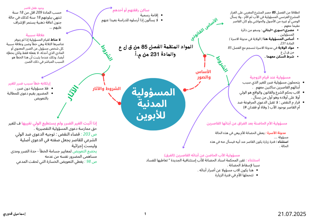 خطاطة لضبط الموضوع المسؤولية المدنية للأبوين في القانون المغربي: دليل شامل للمترشحين لمباراة القضاء.