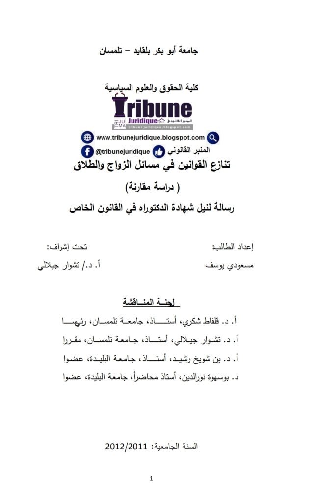 عنوان الرسالة: “ثبوت النسب بين النظرية والتطبيق: دراسة قانونية واجتماعية”