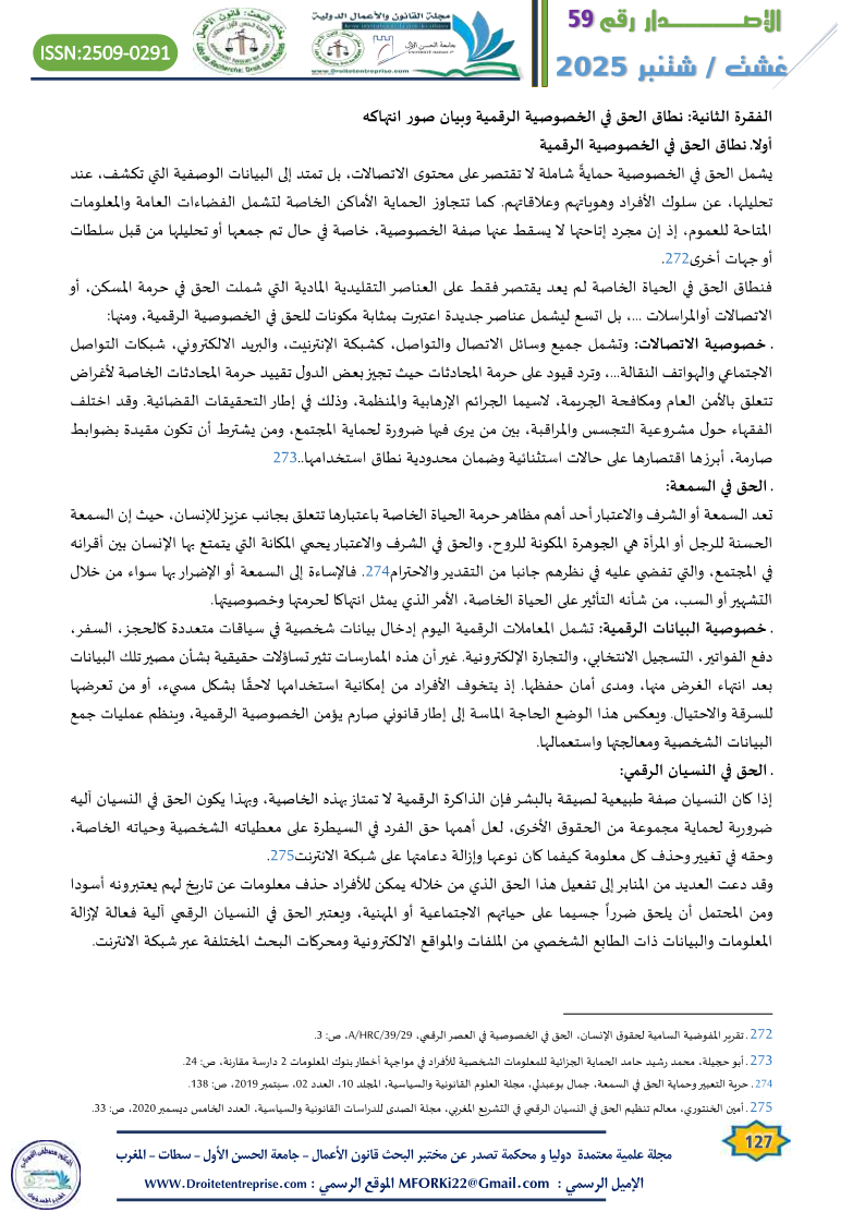 أولاـ نطاق الحق في الخصوصية الرقمية