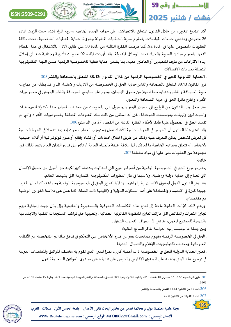 ـ الحماية القانونية للحق في الخصوصية الرقمية من خلال القانون :88.13 المتعلق بالصحافة والنشر