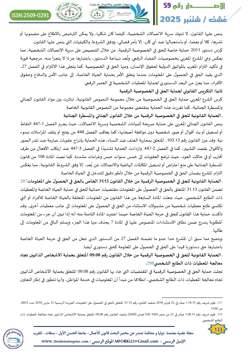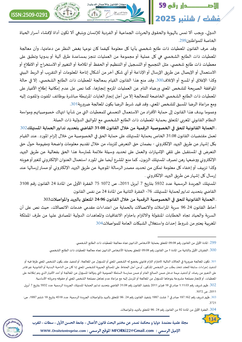 ـ الحماية القانونية للحق في الخصوصية الرقمية من خلال القانون 08-31 القاضي بتحديد تدابير الحماية المستهلك