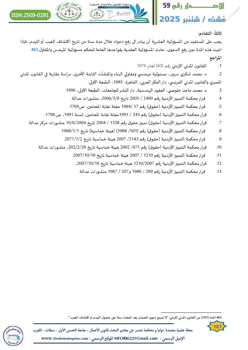 مسؤولية المهندس والمقاول العشرية