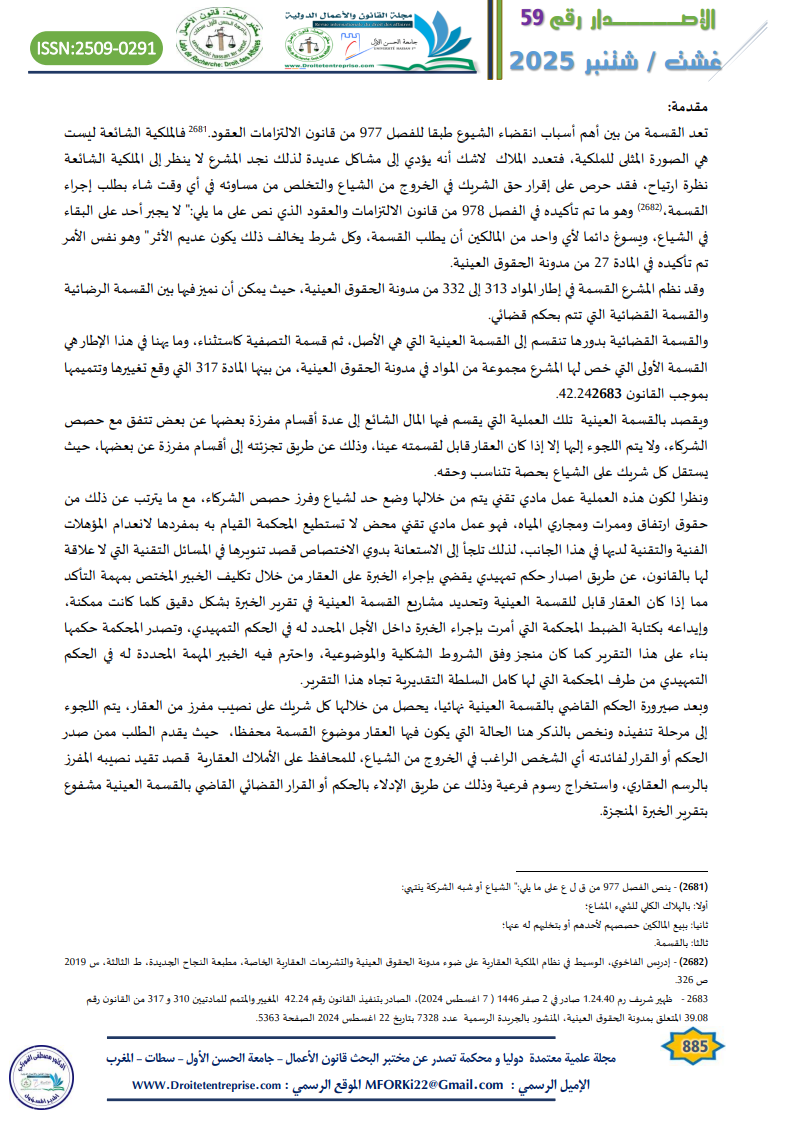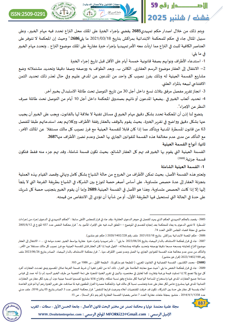 – مجلة ملفات عقارية قضايا القسمة العقارية ع 7 ص 31.