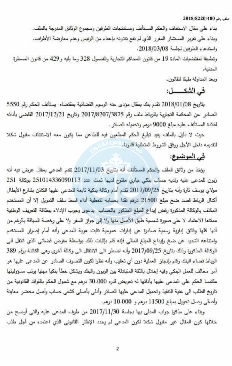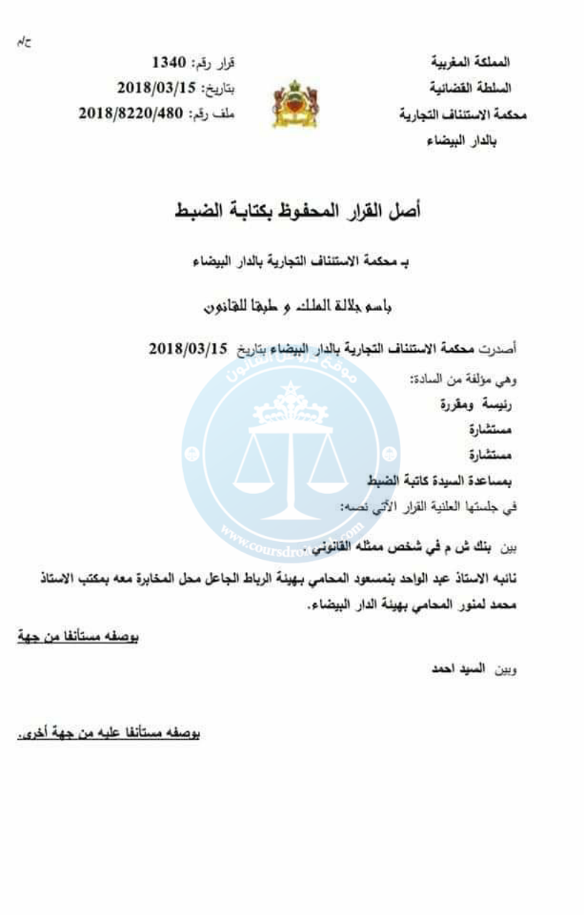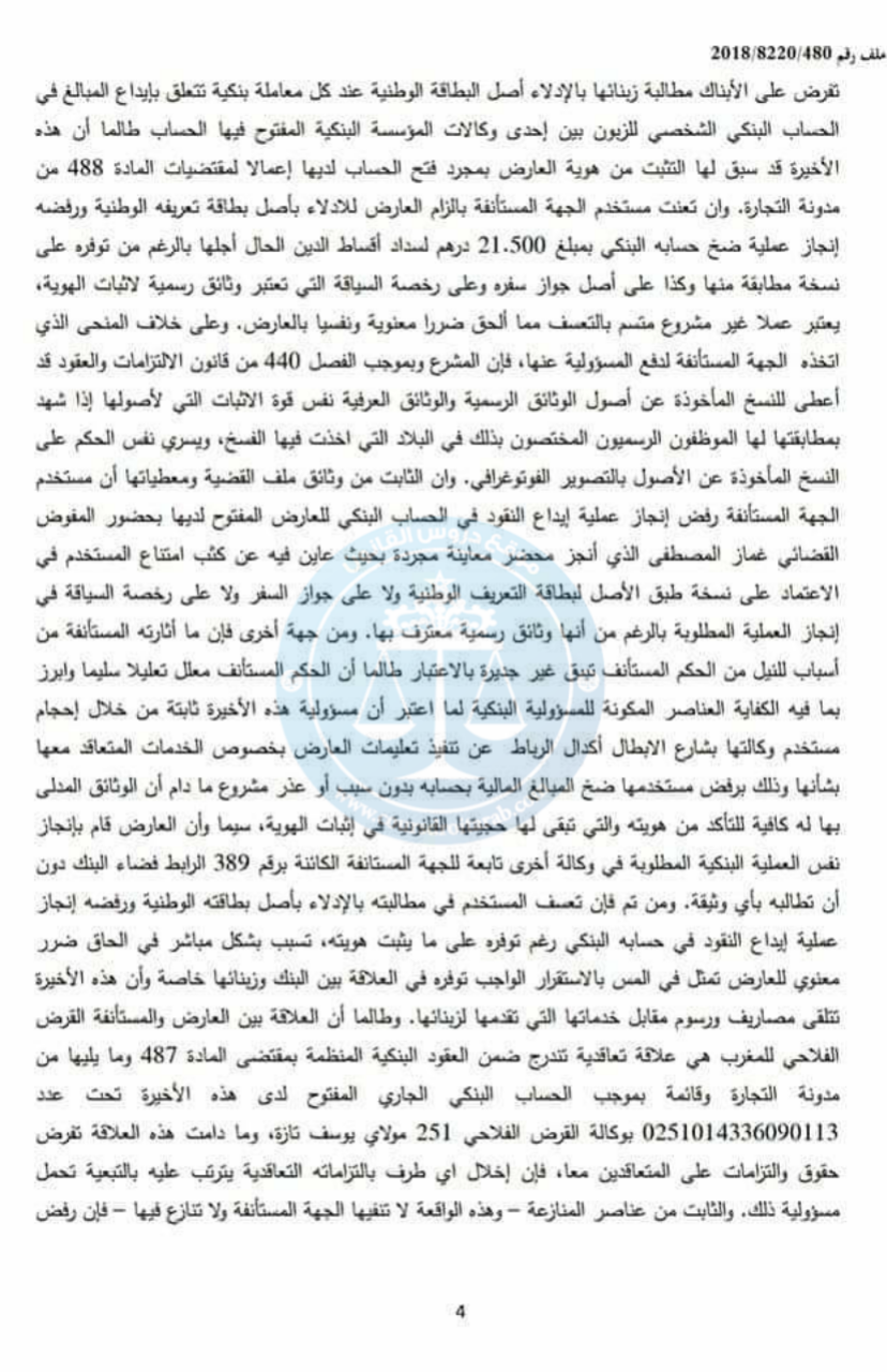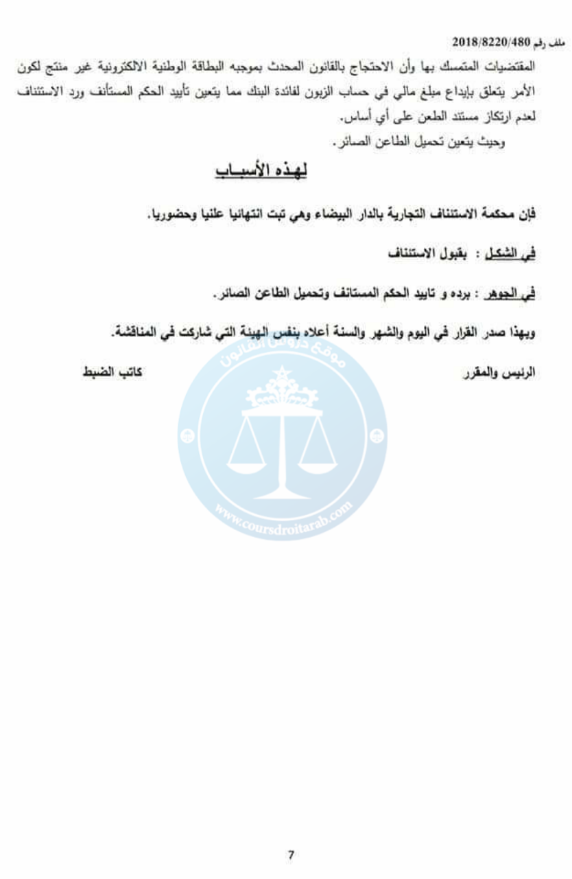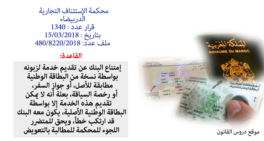 قرار محكمة الإستئناف التجارية الداربيضاء : امتناع البنك عن تقديم خدمة لزبونه بواسطة نسخة من البطاقة الوطنية مصادق عليها يعتبر خطأ
