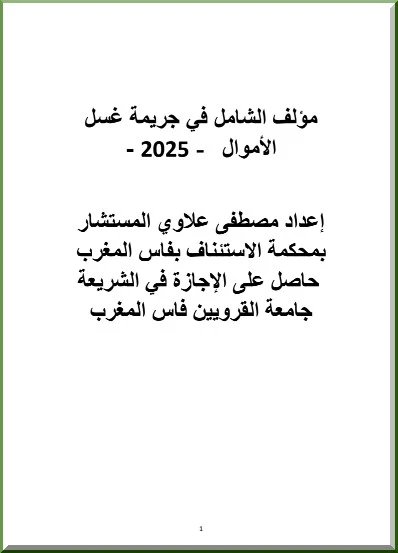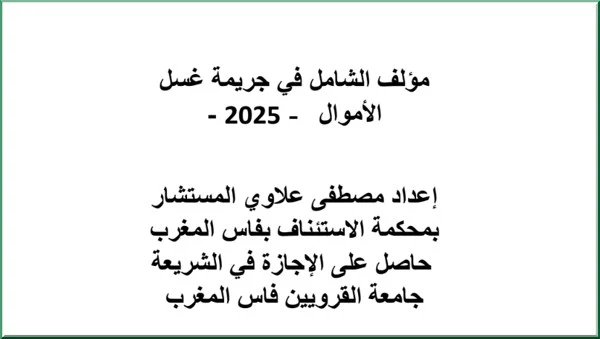 مؤلف الشامل في جريمة غسل الأموال 2025 اعداد : مصطفى علاوي حاصل على دبلوم المعهد العالي للقضاء حاصل على الإجازة في الشريعة جامعة القرويين فـــــــاس المغرب المستشار بمحكمة الإستئناف بفاس المغرب له العديد من المؤلفات رابط التحميل بصيغة PDF _____________ __GDRIVE_LABEL__ أخر المواضيع من قسم : اجتهادات قضائية تعليقات