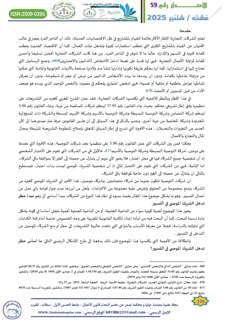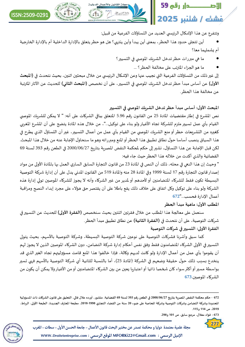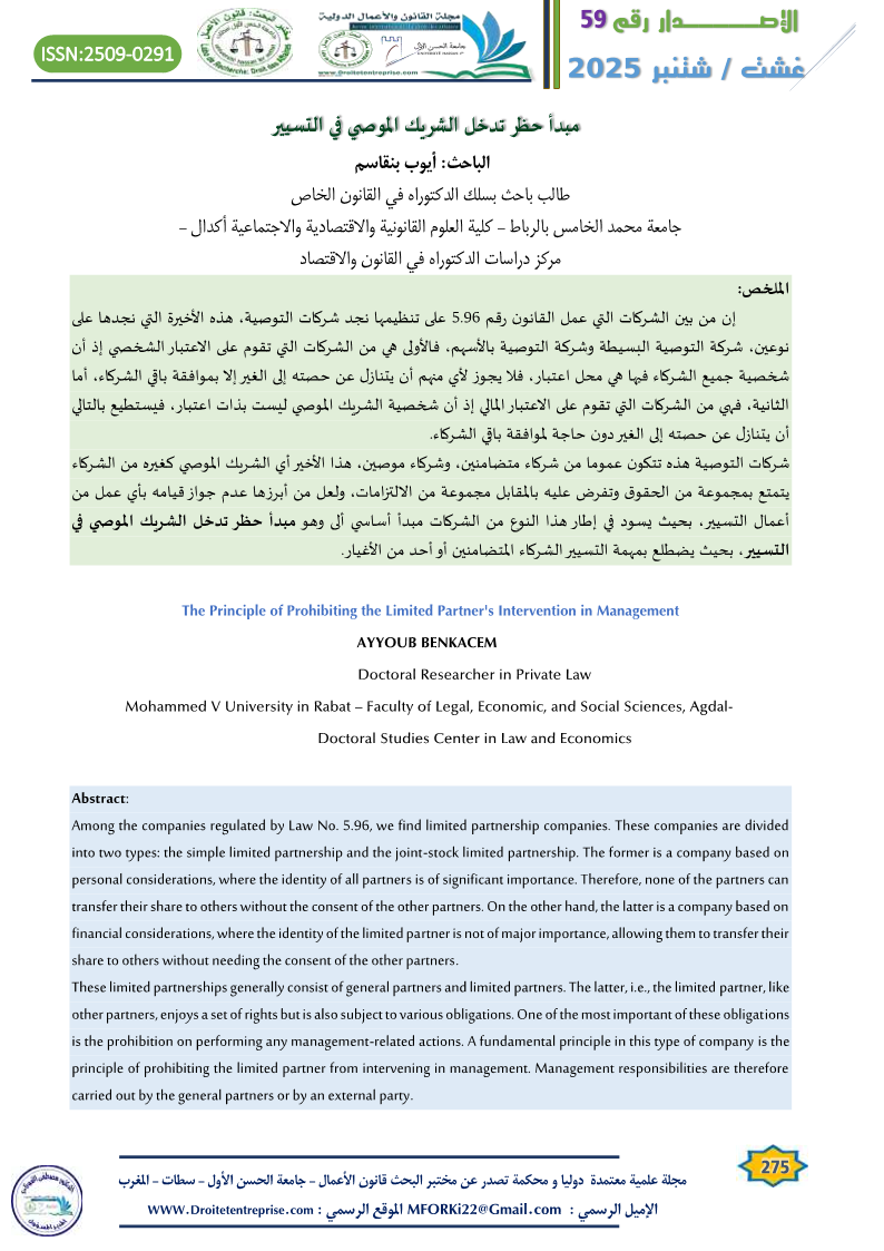 هذا البحث منشور في مجلة القانون والأعمال الدولية الإصدار رقم 59 الخاص بشهر غشت / شتنبر 2025