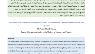 [] إنهاء علاقة تشغيل السجناء لأسباب غير تأديبية في التشريع المغربي والفرنسي الدكتور : نورالدين الحافظي دكتور في القانون الخاص…